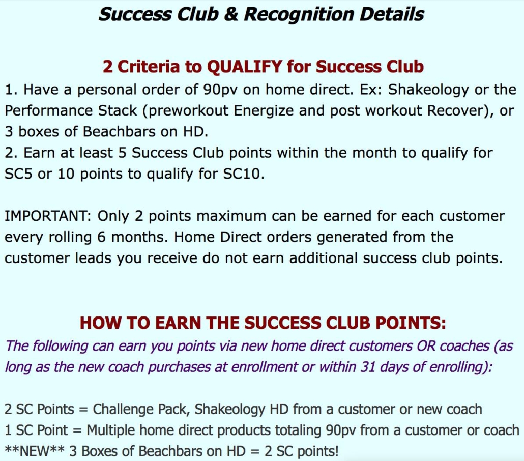 - Save the picture below to your camera roll and understand how to earn Success Club! Earning Success Club earns you rewards, trips, higher income and is a gauge that you are adding customers and coaches!
